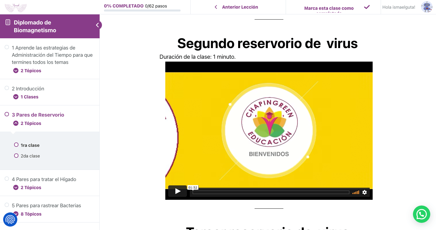 - Colocación de Pares para tratar malestares ocasionados por Virus.